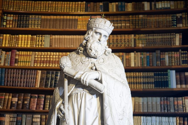 Egy kolostor elképzelhetetlen könyvtár nélkül. Szent Benedek a Regulában előírja a szerzeteseknek az olvasást. „A tétlenség a lélek ellensége. Ezért a testvérek a megállapított időben foglalkozzanak testi munkával, más órákban pedig szent olvasmányokkal” – olvasható az 1500 éves szabálykönyvben, amelyben a rendalapító részletezi az olvasás pontos idejét és módját. A Regula szellemében a Pannonhalmára 996-ban települt első szerzetesek is minden bizonnyal azonnal elkezdték kialakítani a könyvgyűjteményt. Erről száz évvel későbbről maradt fenn a legkorábbi forrásunk. Az 1090 körül keletkezett Szent László-kori összeírólevél 80 kötetet sorol fel. Ez tulajdonképpen az első magyar könyvkatalógus. Az összeírólevél nemes másolatát a könyvtárban bárki megnézheti. Az eredeti példányt pedig a Pannonhalmi Főapátsági Levéltár őrzi. A jegyzék érdekessége, hogy azon nem csak teológiai, hanem profán szakirodalmi műveket is találunk. Olvashatjuk rajta Donatus, a középkorban használt grammatikák egyik jeles összefoglalója, Lucanus, a filozófus és Cato, a történetíró nevét is. Ez nemcsak a bencések nyitottságát jelzi, hanem azt is, hogy a pannonhalmi kolostorban működött az első iskola Magyarországon.