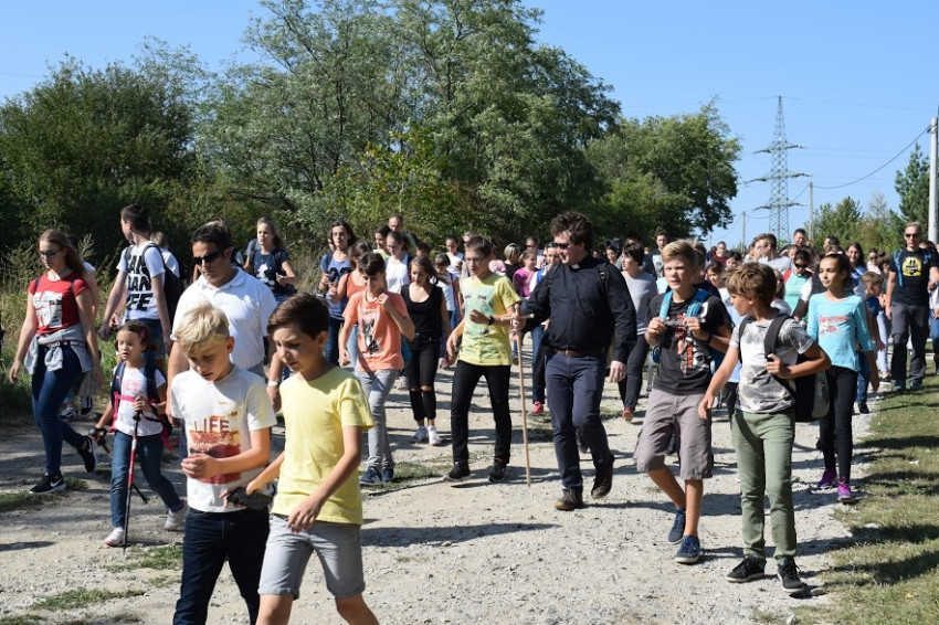Az idei útvonal hosszabb, de biztonságosabb volt: nem a főút mentén, hanem erdőn és külterületi utakon jutottak el a diákok Sopron városközpontjából a kópházi kegytemplomhoz – énekelve, imádkozva, beszélgetve, jó hangulatban, békés lelkülettel. A Sarlós Boldogasszony-templom előtt Németh Antal, Kópháza plébánosa fogadta a diákokat és tanárokat. Az ünnepi szentmisét Kovács Gergő Vilmos iskolalelkész celebrálta, közreműködött az iskola tanárokból és diákokból álló zenekara.