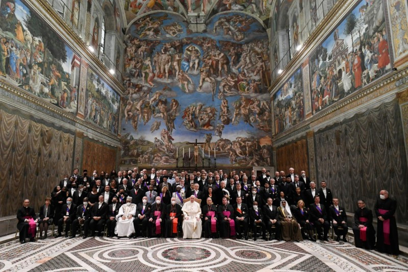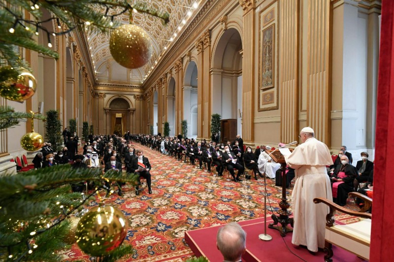 Ferenc pápa a nagyköveteket köszöntve egy nagy családi összejövetelhez hasonlította a találkozót, hangsúlyozva a diplomácia elsődleges célja, vagyis a párbeszéd fontosságát, amely segít az emberi együttélésből fakadó nehézségek feloldásában, valamint a valóság felfedezésében.