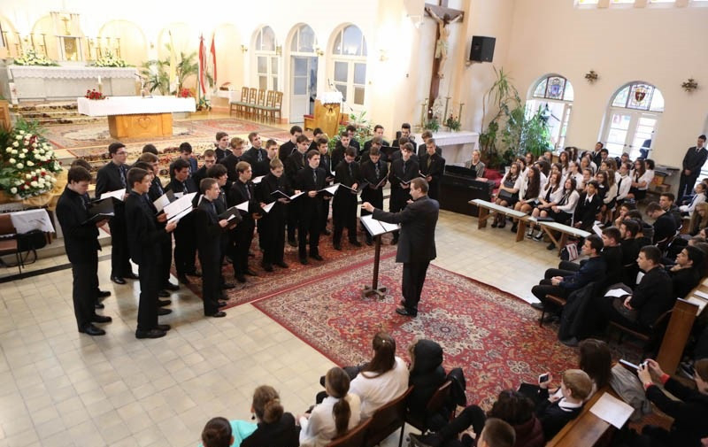 „A kórustalálkozóra 1996-ban került sor először, akkor még inkább a gregorián műfajára koncentrálva” – mondta el a főszervező, Ráczné Bella Cecília, a piarista iskola Mathia Károly Vegyeskara és a Schola Gregoriana Calasantiana karnagya, majd hozzátette: „Később katolikus iskolák kórustalálkozójává bővítettük, amivel az volt a célunk, hogy az újjáalakult egyházi oktatási intézmények kórusainak szereplési, gyakorlási lehetőséget biztosítsunk. A mostani találkozóra a 250 éves jubileum kapcsán a piarista iskolák kórusait hívtuk meg, Kecskemétről, Budapestről, Mosonmagyaróvárról, illetve horvátországi testvériskolánkból, a zadari II. János Pál Katolikus Gimnáziumból.”