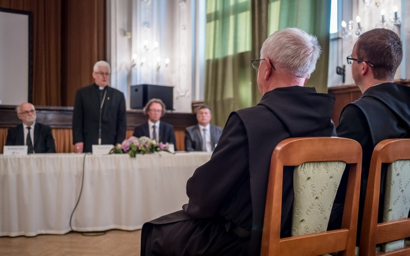 A főpásztori köszöntő után Csurgai Horváth József, a Városi Levéltár és Kutatóintézet igazgatója, a Szent István-emlékérem és díj kuratóriumának tagja ünnepélyesen bejelentette, hogy az idei díjazott Korzenszky Richárd OSB, a Tihanyi Bencés Apátság emeritus perjele.