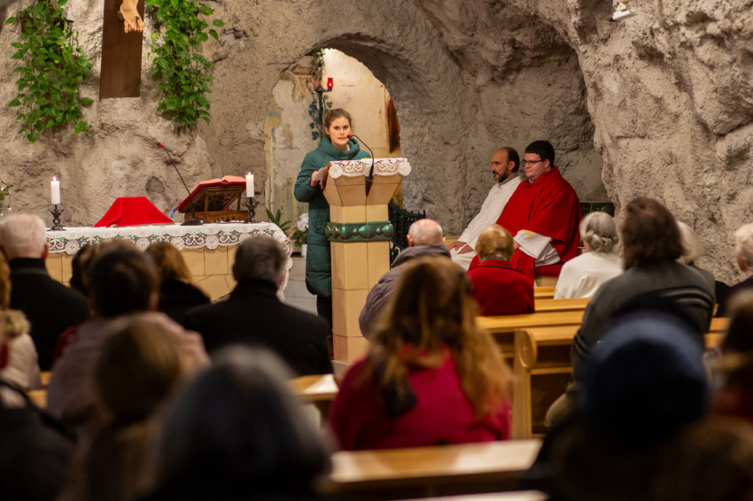 Az elmélkedés előtt imádság hangzott el Máriához, az élő evangélium anyjához, hogy segítsen kimondani az igenünket, amikor meg kell szólaltatnunk Jézus örömhírét, a halált legyőző élet evangéliumát.