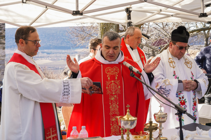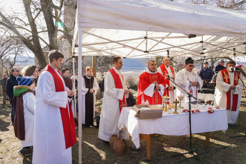 A szentmise elején Mezei András, a keszthelyi kármelita bazilika plébánosa, az ünnepi szentmise főcelebránsa és szónoka így fogalmazott: „Itt vagyunk e gyönyörű szép helyen, a Balaton egyik legszebb helyén Szent Balázs tiszteletére épült templomromnál. Az őseink hite ma is él, nekünk kötelességünk, hogy ezt a hitet megéljük. Nem őriznünk kell, nem zárhatjuk be, hanem meg kell élnünk, és tovább kell adnunk! Ezért vagyunk itt, hogy éltessük a vértanú tiszteletét, hűségét, kitartását, áldozatát.”