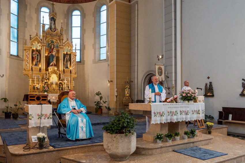 A Jelenések könyvében van egy kép, amelyet egyszerre alkalmaz az Egyházra meg a Szűzanyára is a bibliatudomány: „Az égen nagy jel tűnt fel: egy asszony; öltözete a Nap, lába alatt a Hold, fején tizenkét csillagból korona” (Jel 12,1). Egyes ábrázolásokon lába alatt a hold, más ábrázolásokban a kígyó. Ez az asszony a remény Szűzanyja, Magyarok Nagyasszonya, a remény asszonya, aki eltapossa a kígyó fejét. Minket, magyarokat most is a reményre hív. Ha ragaszkodunk hozzá és az ő Szent Fiához, akkor a Magyarok Nagyasszonyának gyermekei vagyunk, és a jövő épül általunk – zárta ünnepi szentbeszédét Bíró László püspök Pécsszabolcson, a Magyarok Nagyasszonya-templomban.