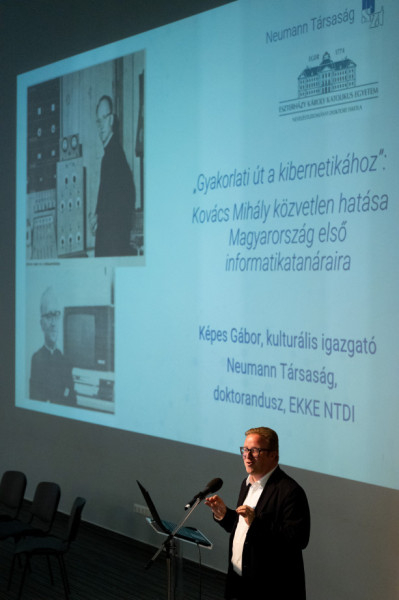 Képes Gábor, a Neumann János Számítógéptudományi Társaság kulturális igazgatója Kovács Mihály kibernetikai szakköreinek és tanítógépeinek szerepét elemezte a magyar informatikatanítás kialakulásában.