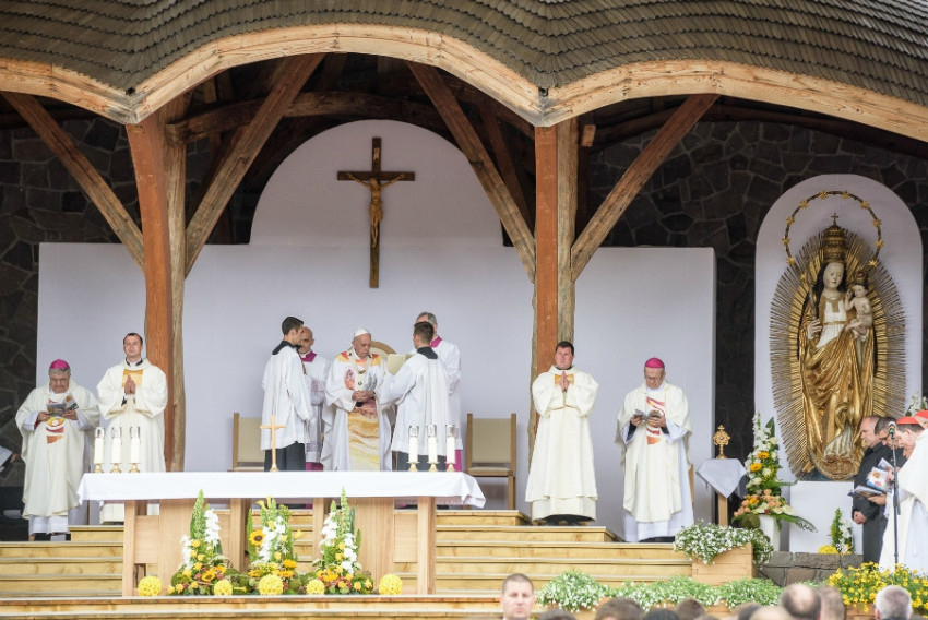 Két évvel később Budapestre visszatérve, jelentőségteljes szavakkal imádkozott a pócsi kegykép árnyékában: „Forduljunk most a Szűzanyához. Őrá bízok minden magyart, a Magyarok Nagyasszonyára, akit királynőként és patrónaként hívtok segítségül. És innen, e nagyszerű városból és e nemes országból az ő szívére szeretném bízni az európai kontinens hitét és jövőjét (...). Szent Szűz, tekints a különösen sokat szenvedő népekre! Tekints különösen a szomszédos, meggyötört ukrán népre, és az orosz népre, neked szentelt népeidre! Te, aki a Béke Királynője vagy, öntsd az emberek és a népek vezetőinek szívébe a vágyat, hogy a békét építsék, hogy a következő nemzedékeknek a remény jövőjét nyújtsák, ne a háborút; egy bölcsőkkel és nem sírokkal teli jövőt; egy testvérekkel és nem falakkal teli világot! (...) Hozzád imádkozunk az Egyházért Európában, hogy újra megtalálja az imádság erejét (...). Reád bízzuk ezt az Egyházat és ezt az országot. Te, aki Fiad feltámadásának örvendeztél, töltsd el szívünket az ő örömével.”