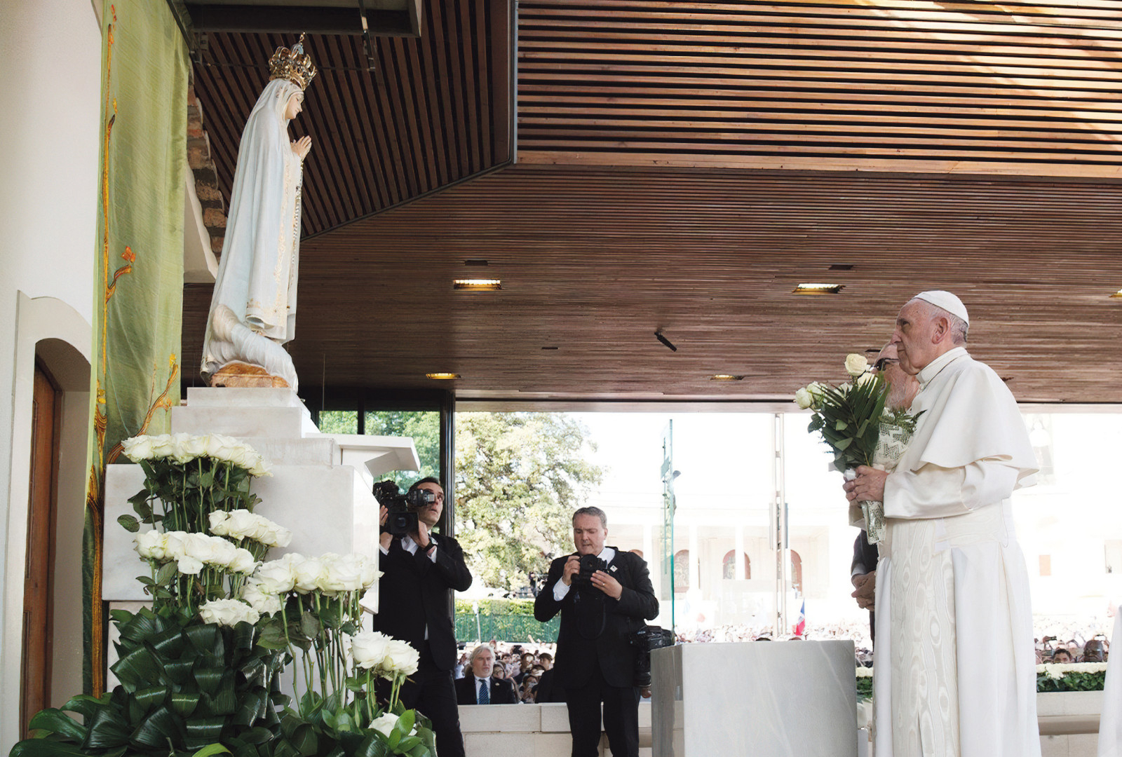 A világszerte egyre inkább elmérgesedő konfliktusok közepette – melyeket a Szentatya jó néhány éve „darabokban zajló világháború” névvel illetett – kitartóan kérte a Béke Királynőjének közbenjárását.