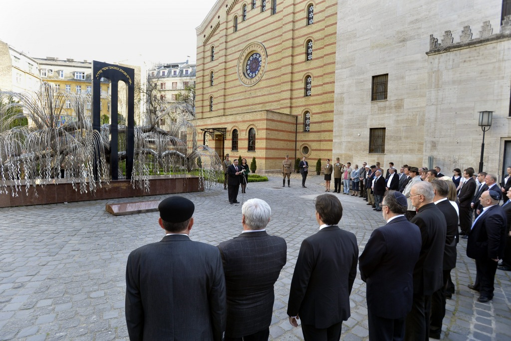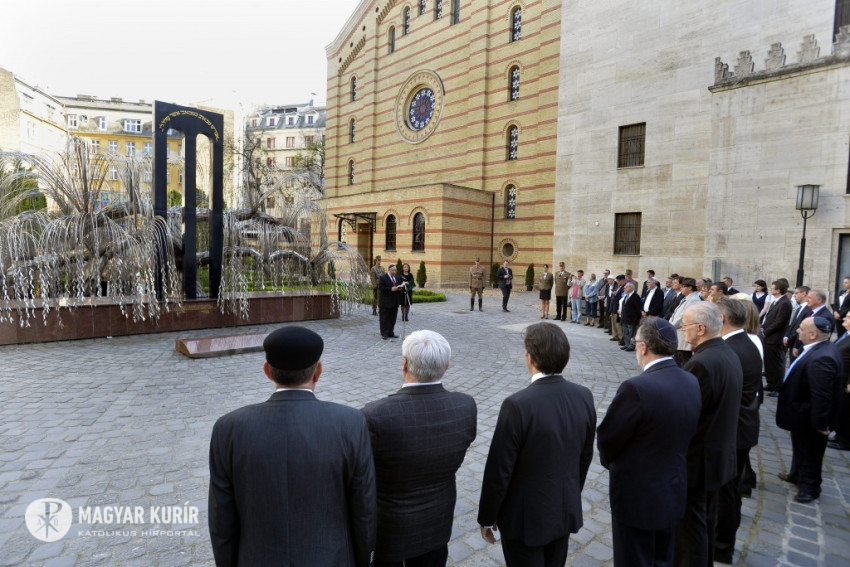 Az áldozatok emlékére Fröhlich Róbert, a Dohány utcai zsinagóga főrabbija mondott imát.