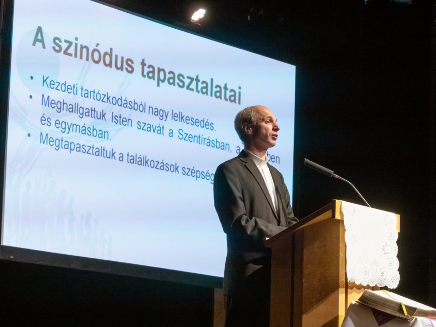 Csernai Balázs pasztorális referens rámutatott arra, hogy az előző évek eseményei hogyan készítettek fel bennünket a szinódusra. A járvány idején megtapasztaltuk a „közös magányt”, ezáltal felértékelődtek a találkozási lehetőségek. A budapesti Nemzetközi Eucharisztikus Kongresszuson átéltük az Egyház szépségét és egységét Ferenc pápával, a püspökökkel, a papokkal és a világ minden részéről érkezett hívőkkel. A fáklyás körmeneten Jézussal együtt haladtunk Budapest utcáin, így fizikailag tapasztaltuk meg a szinódust, a közös utat. Ennek folytatására hívott meg Ferenc pápa a kongresszus záró szentmiséjén: ne csak csodáljuk Krisztus, hanem kövessük is.