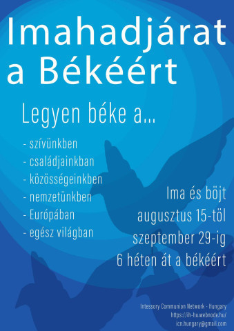 Hívunk tehát minden keresztényt, hogy csatlakozzatok hozzánk és imádkozzunk együtt a békéért 6 héten keresztül, 2022. augusztus 15-től szeptember 29-ig, mindennap!