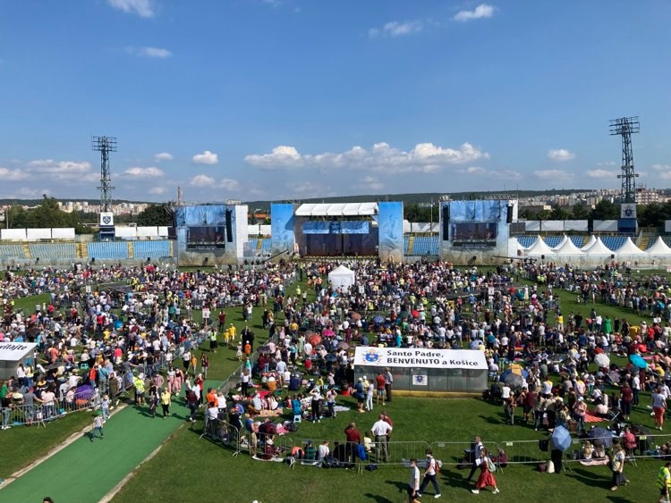 A cigány közösség meglátogatását követően Ferenc pápa a Lokomotiva stadionba érkezik, ahol közel 30 ezer fiatal készül a vele való találkozásra. A kassai főegyházmegye által szervezett ifjúsági találkozó délben kezdődött a Latorca menti város sportcsarnokában. A létesítmény a helyi katolikus közösség számára már „megszentelt” hely, hiszen 2018. szeptember 1-jén itt avatták boldoggá a főegyházmegye vértanúját, Anna Kolesárovát. Boldog Anna a mostani találkozó példaképe, ezért a hit és a hűség adja a nap témáját. Anna Kolesárová ereklyéje is megtalálható a – Budapesten, szeptember 5–12. között megrendezett – 52. Nemzetközi Eucharisztikus Kongresszus missziós keresztjében. Boldog Anna életéről bővebben korábbi írásunkból olvashat.