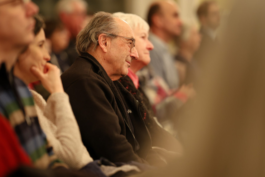 – fogalmazott Martos Levente Balázs. – Odatársulnak hozzánk, ahol vagyunk, „az életünkkel, a vágyainkkal, a haragunkkal, a fájdalmunkkal, és aztán egyszer csak bekapcsolnak egy titokzatos, új regisztert, az Úr Jézus Krisztus hangját”, és Krisztuson keresztül sokak reményét, vágyakozását és fájdalmát.