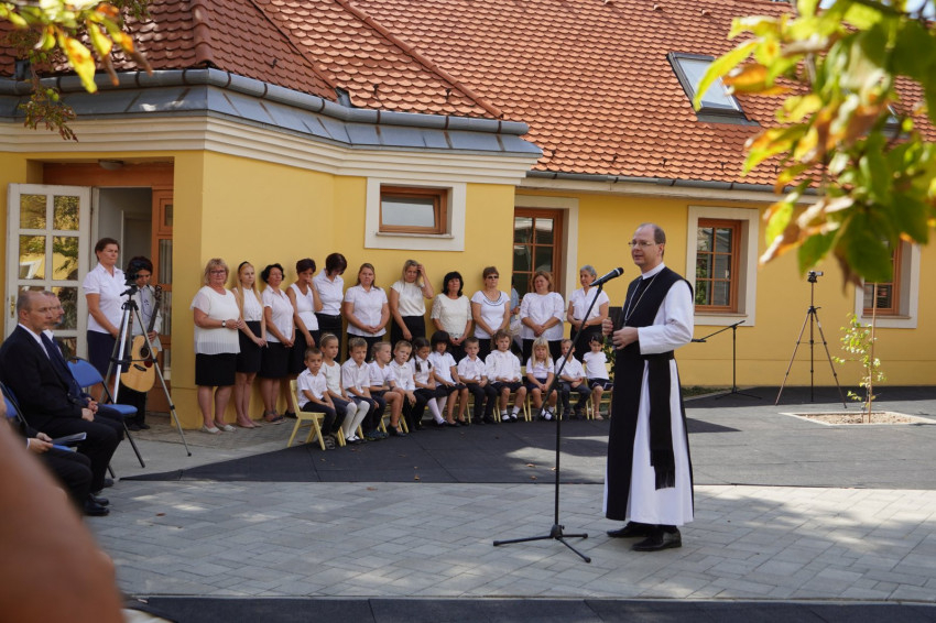 A zirci apát ünnepi beszédében felidézte, mennyire szükséges volt már ennek a régi, szinte történelmi épületnek a megújulása. Az általános iskola mellett álló óvoda állaga és berendezése ugyanis már nem felelt meg a mai igényeknek.