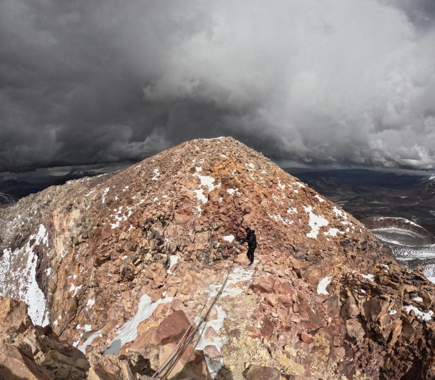 – M. Á.: Heti szintű túrázással, rendszeres futással, információgyűjtéssel, éghajlati diagramok vizsgálatával, engedélyek és a mászáshoz szükséges eszközök beszerzésével telik egy-egy felkészülési időszak. Amikor az Ojos del Saladót céloztuk meg, pontosan tudtuk, hogy mire kell számítanunk, mivel már jártunk itt. (Az Ojos del Salado – szó szerint sós szemek – rétegvulkán az Andok második legmagasabb hegye, Argentína és Chile határán húzódik – a Szerk.). Ezt a területet rendkívüli szárazság, szeles és hideg időjárás jellemzi, magas UV-sugárzással, így a bőrünk védelmére kellett nagy hangsúlyt fektetni. Körülbelül 30 kilós csomaggal érkeztem Chilébe, került a táskámba például hegymászóbakancs, gázfőző, jégcsákány, hevederek, adóvevő- és műholdas üzenetküldő készülék. Érdekesség, hogy még akkor is, ha minden eszközünk adott a főzéshez, 5000 méter fölött már nem igazán van étvágyunk, mégis muszáj ilyenkor erőt vennünk magunkon, hiszen az energiára szükség van. Fontos kellékem volt még a legutóbbi út során a napelemmel ellátott táskám, ami nagyon jól jött a különböző eszközeink töltésére, hiszen infrastruktúra ezen a területen nincs kiépítve.