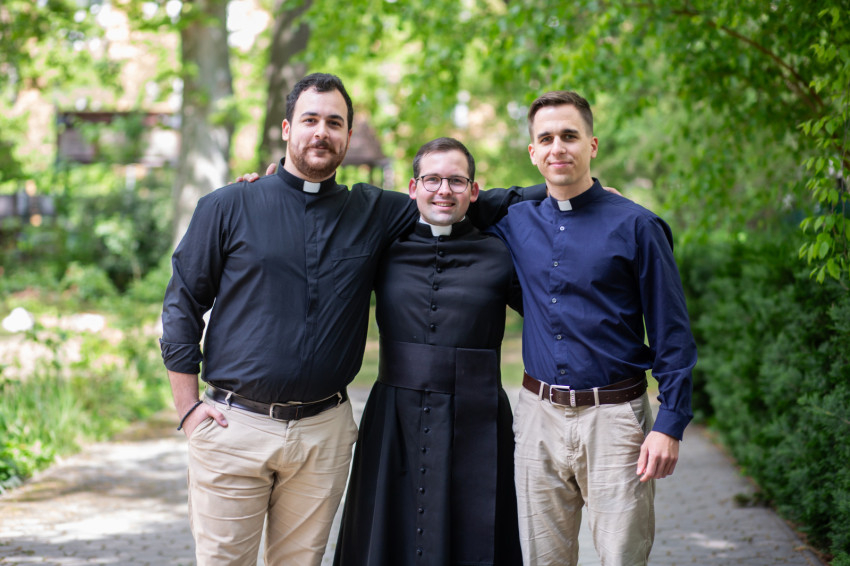 Négyük közül hárman egy helyen tanultak [esztergomi Érseki Papnevelő Intézet, míg Riesz Benedek a Köponti Papnevelő Intézet növendéke volt – a Szerk.], ők együtt érkeztek a beszélgetésre: vidám társaságot fogadtunk a szerkesztőségben szentelésüket megelőzően, egy hétfő délelőtt. Három élénk fiatal, tele mosollyal, lendülettel. Ők az Esztergom-Budapesti Főegyházmegye papnövendékei voltak, akik diakónusi évüket töltötték Budapesten. Látszik, hogy megvan köztük az összhang, olyan papi testvériség, barátság, ami hivatásbeli elkötelezettségüknek mély, szilárd alapot ad.