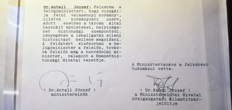 Az igényes kiállítás egészen a rendszerváltásig vezeti el a látogatót. A bemutatott dokumentumok közül korban legfiatalabb az a jegyzőkönyv, amely Antall József első kormányüléséről készült. Jól látszik rajta Antall aláírása és az ülésen részt vevők névsora.