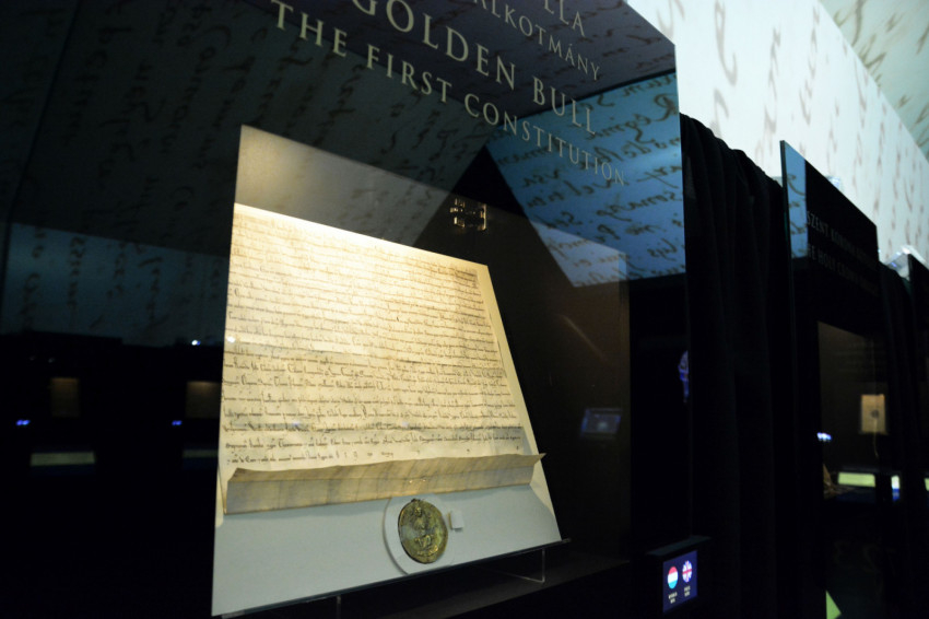 A kiállításon továbbmenve egy meseszép aranypecsét ötlik a látogató szemébe, felette II. András aranybullával megerősített oklevele olvasható 1221-ből. Olyan tökéletes állapotban van ez a különlegesen szépen írott, középkori hangulatot árasztó oklevél, hogy csak bámulja az ember.