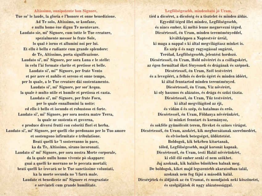 – Szent Ferenc híres imakölteményét szeretnénk több irányból megközelíteni, és azt vizsgálni, hogy nyolcszáz év távlatából hogyan szólít meg minket – miért fontos ma, és milyen üzenetet hordoz a különböző tudományterületek felől nézve. A konferencia egyszerre multi- és interdiszciplináris. Fontos számunkra, hogy ne csak szűk akadémiai körben zajló tanácskozás legyen, hanem egy meghívó jellegű, nyitott esemény, ahol izgalmas találkozások jöhetnek létre. Várjuk mindazokat, akiket Szent Ferenc öröksége bármilyen módon megszólít. Nem lelkigyakorlatról vagy evangelizációról van tehát szó, hanem azt célozzuk, hogy bemutassuk a Naphimnusz kulturális értékét. Ugyanakkor reméljük, hogy azok számára is tartogat új szempontokat, akik ferences örökségből érkeznek, és eddig inkább csak a belső, spirituális oldaláról ismerték ezt a szöveget.