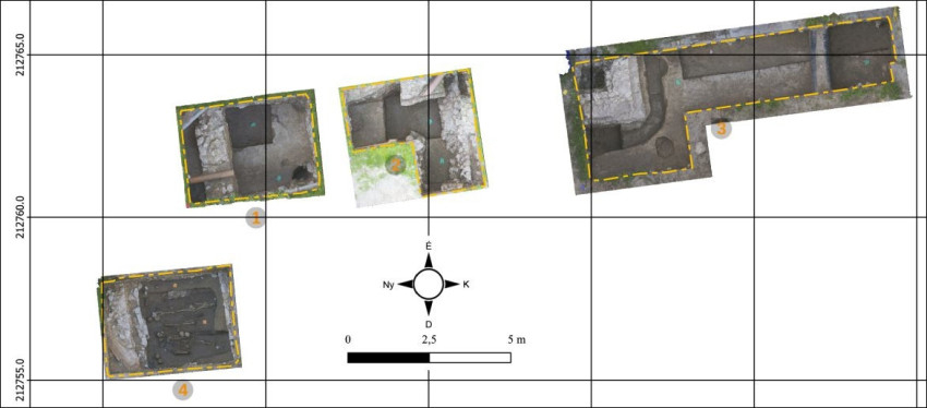 Az ELKH által támogatott régészeti feltárás szelvényeinek georeferált, 3D fotogrammetriás összesítő alaprajza