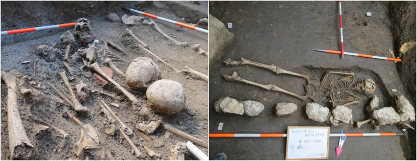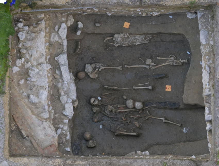 Az ásatáson négy különböző, 11. századból származó, részben vagy teljesen ép temetkezési hely került elő, valamint rengeteg bolygatott csont, koponya és csontkupac, melyek összességében legalább kétszer ennyi egykor itt elföldelt személyre utalnak. Az elhunytak között volt egy gyermek, egy élete során komoly sérüléseket szenvedett férfi, valamint egy olyan egyén is, akinek sírgödrét sorban lehelyezett kövekkel keretelték.