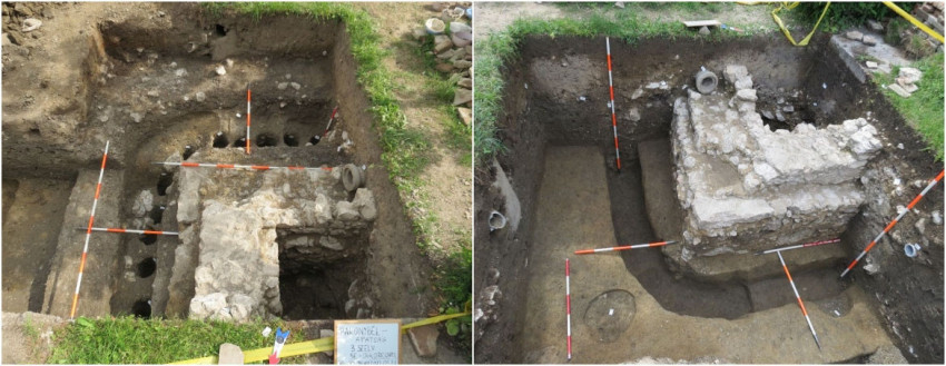 A kőépület fa-föld szerkezetű megerősítése a cölöphelyekkel és a cölöpárok teljes kibontása