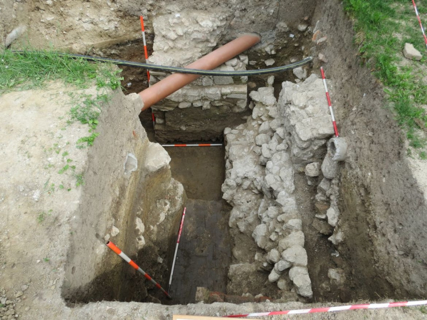 A közlemény szerint fontos eredménye a feltárásnak egy keskeny árok előkerülése, melyet a középkor végén kiszórt szemétbe ástak bele. A cölöpárokba számos festett és formára faragott téglatöredék, valamint szintén festett díszű ‒ talán kvádermustrás ‒ vakolt falazókő is került. Az árokba állított cölöpökből régen paliszádfalat alakítottak ki, ami ellenállóbbá tette a monostor kőfalait a tűzfegyverekkel szemben.