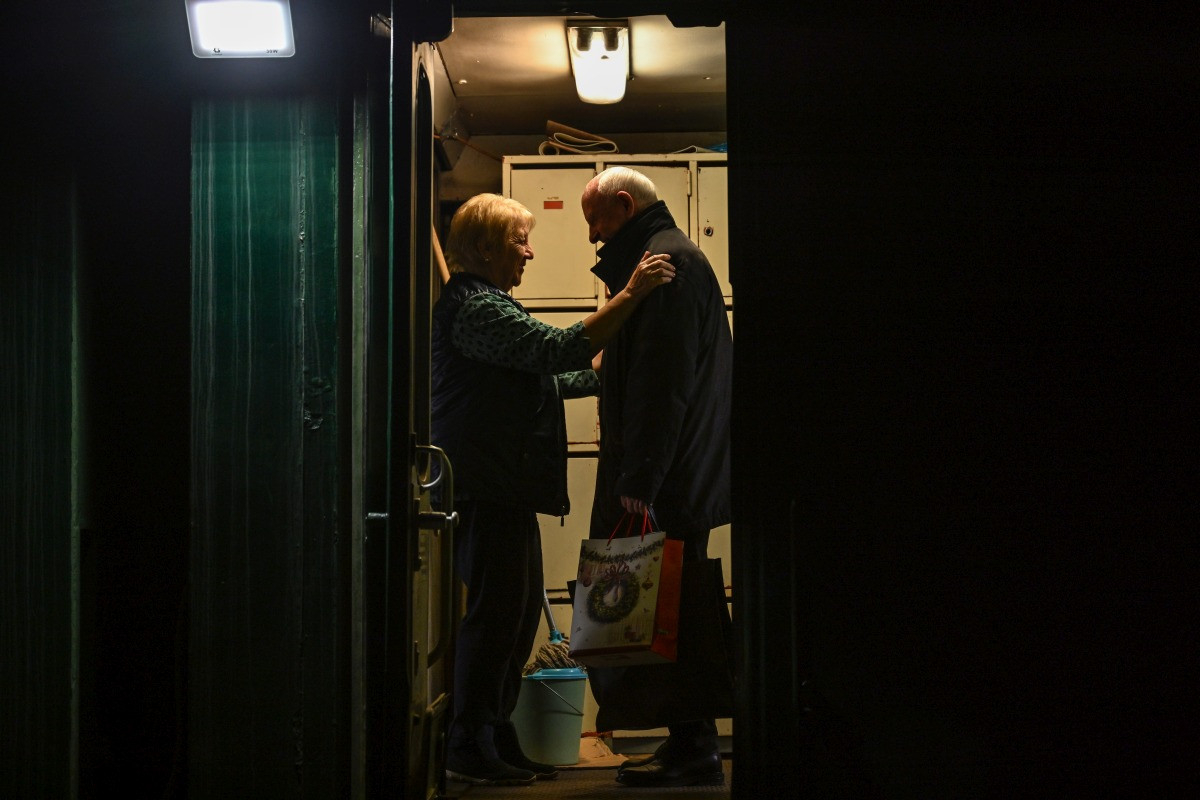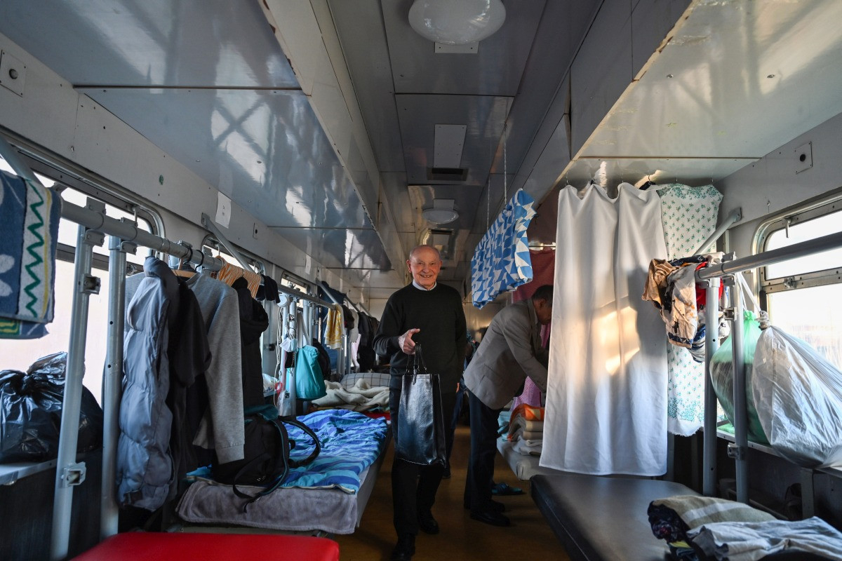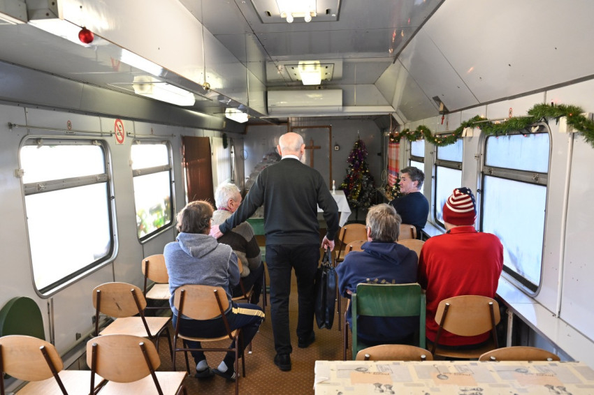 Kozma Imre, a Magyar Máltai Szeretetszolgálat alapító elnöke december 24-én délután érkezett a Vonatra, ahol már kívül-belül ünneplőbe öltözve várták.