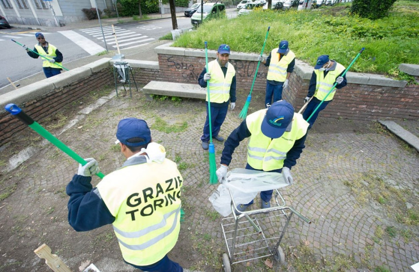 A torinói önkormányzat által fenntartott menekültállomások lakói minden szombaton hat órán át a városban szükséges közmunkákban nyújtanak segítséget.