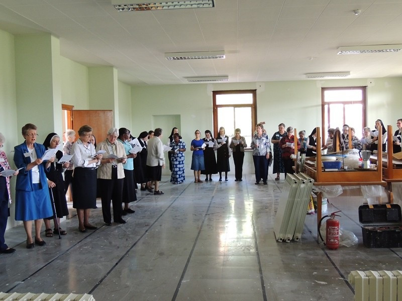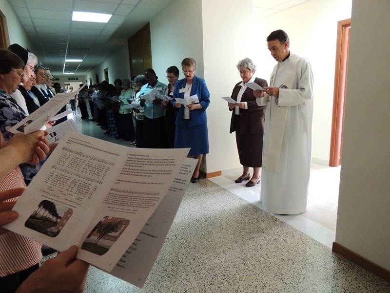 Az Általános Tanács, a generalátusi nővérközösség és a kilenc rendtartomány tartományfőnöknői, tartományi tanácsosai a kongregációhoz tartozó nyelveken, így magyarul is énekelve, imádkozva járták be a leendő novíciák egyelőre üres közösségi tereit: a kápolnát, a nappalit, a tantermet, a könyvtárat és a lakószobákat. A magyar rendtartományt Lobmayer M. Judit tartományfőnöknő és két tanácsosa, Baráti M. Kinga és Bencze M. Regina nővér képviselte.