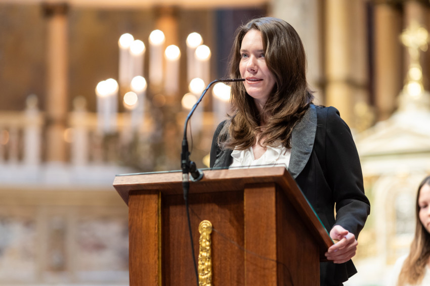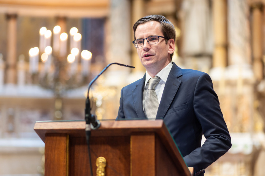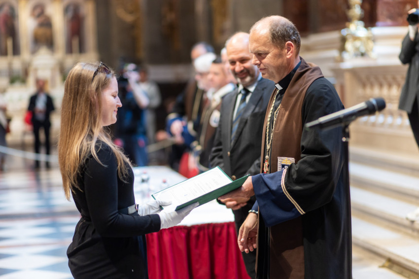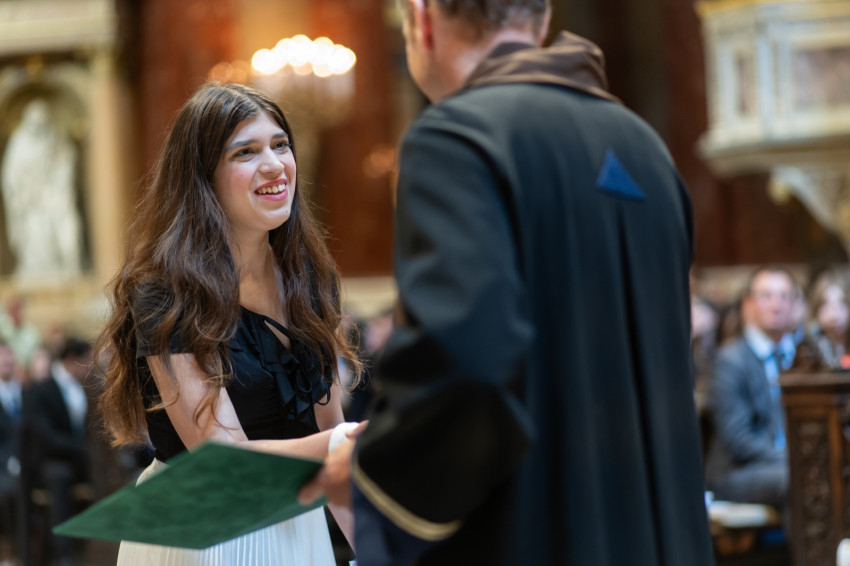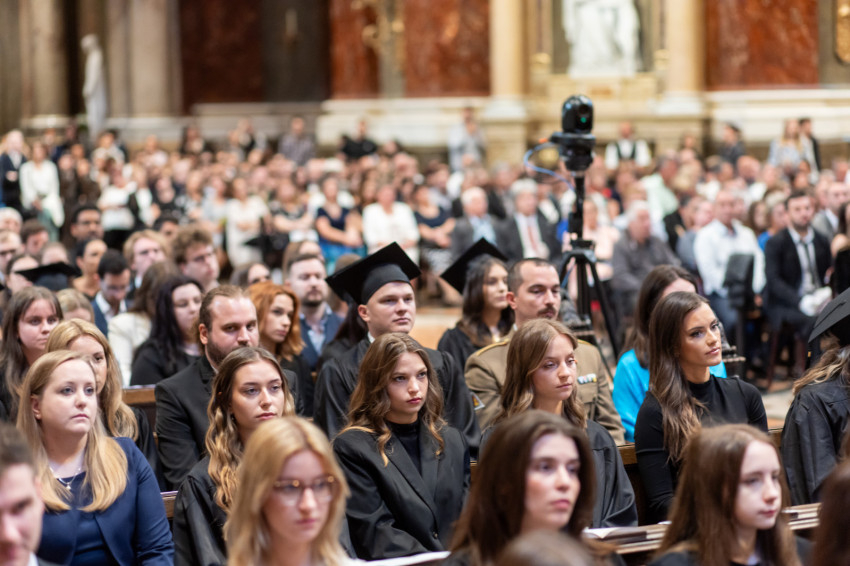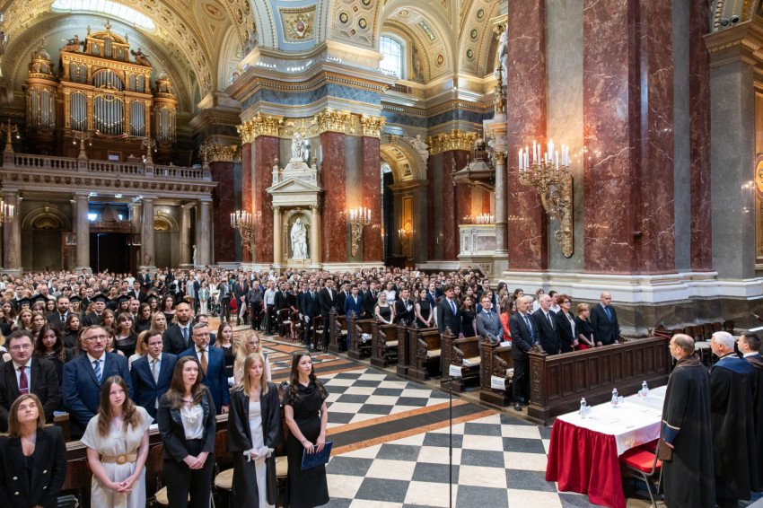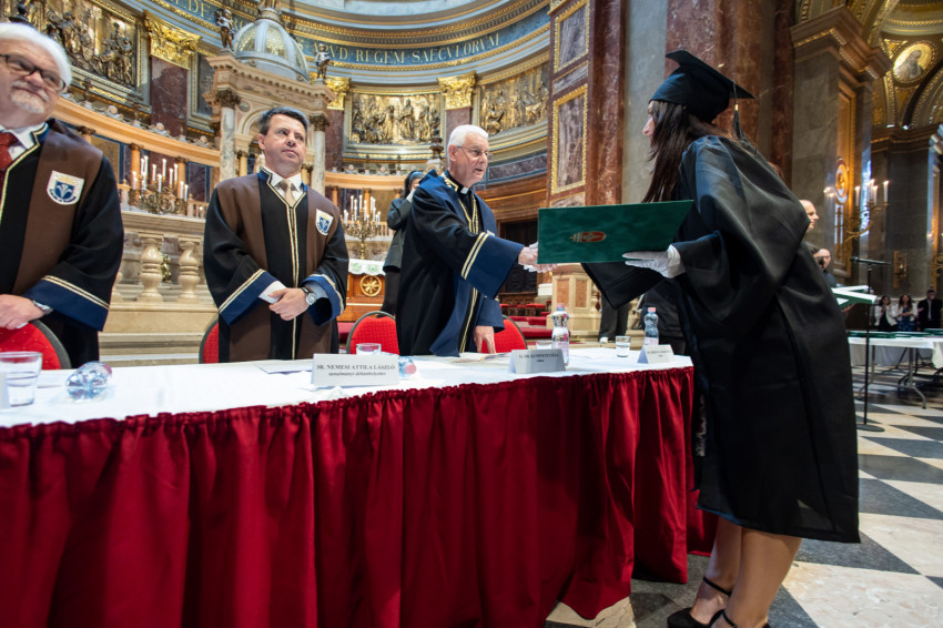 A minisztériumi főtanácsadó buzdította a frissdiplomásokat, hogy „legyenek büszkék, hogy a Pázmányon szerezhettek oklevelet, és itt, a Szent István-bazilikában vehetik át, még akkor is, amikor egyes vélemények szerint itt veszélyeztetik a tudományos integritást, amikor nehezményezik az egyetem nevében használt katolikus szóból eredő kötelezettségeket és ha majd azt állítják, hogy alma materük a vallási extremizmus egyik bástyája.