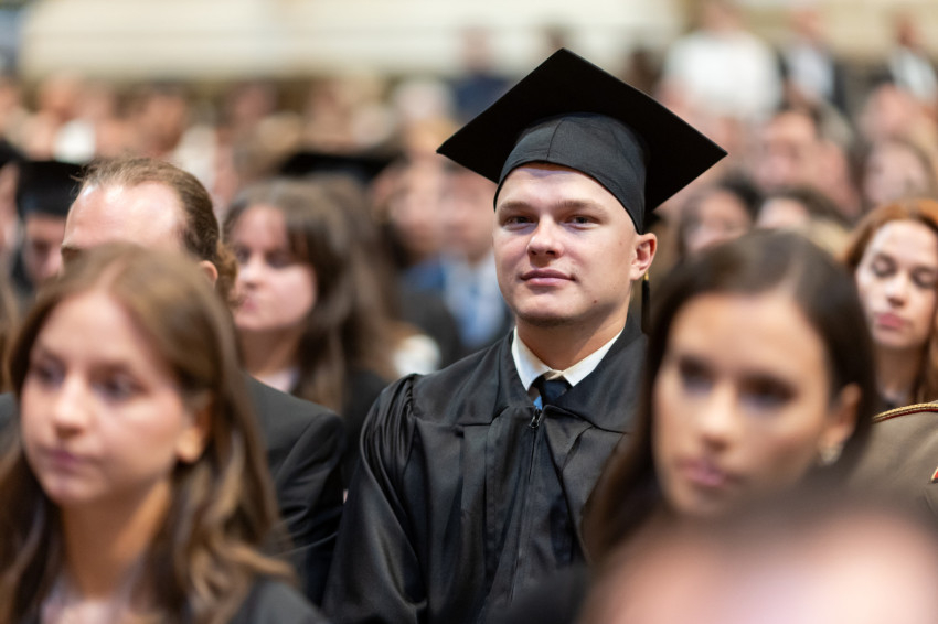 A könyörgések után a jelenlévők közösen elmondták az egyetem imáját, majd a diplomásokat Hegyi László, a Kulturális és Innovációs Minisztérium Felsőoktatásért, Szak- és Felnőttképzésért, Fiatalokért Felelős Államtitkárság főtanácsadója köszöntötte.