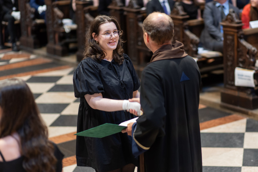 A dékán beszédében, mintegy üzenetként leszögezte: „Ne feledjék, mindig van mód megtérésre, bűnbánatra és bűnbocsánatra! Döntéseikben jussanak eszükbe Boldog Apor Vilmos édesanyjának szavai: »Ha nem tudod mit válassz, válaszd a nehezebb utat!«”.