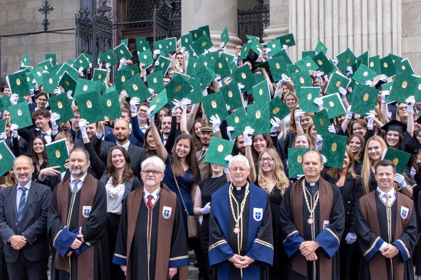 Hegyi László elmondta: „a középkorban az egyházi intézmények úgynevezett hiteles helyek voltak, joguk volt oklevelek kiállítására. Ma, amikor az Esztergom-Budapesti Főegyházmegye társszékesegyházában átveszik a végzettségüket tanúsító oklevelüket, amelyet a PPKE állított ki, szintén egy hiteles helyről kapják a diplomájukat. Ezt a hiteles helyet Pázmány Péter 390 évvel ezelőtt a kereszténység időtálló értékeinek képviseletére, tanítására alapította. Az egyetem ma sem tehet mást, s ezt minden oktatónak és hallgatónak tudnia kell és tiszteletben kell tartania, amikor mérlegeli, hogy csatlakozzon-e a Pázmány közösségéhez.”