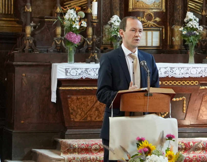 A múlt történéseire való emlékezés mindig tanulságos a jelenre nézve – kezdte beszédét a főpásztor. Ahogy a 13. századtól a családokban megélt hit egyszerűségben, szegénységben megtartotta, sőt, felvirágoztatta az itteni közösséget, ugyanúgy ezen az úton juthatunk előrébb ma is. Ahogy egy család is úgy marad meg, ha asztalközösséget alkotnak, az egyházközségnek is szüksége van az eucharisztikus asztalközösségre. A létszám fogyása mellett a fő nehézség, hogy elvesznek a kapcsolataink, aminek következtében elvész az ember – figyelmeztetett Felföldi László.