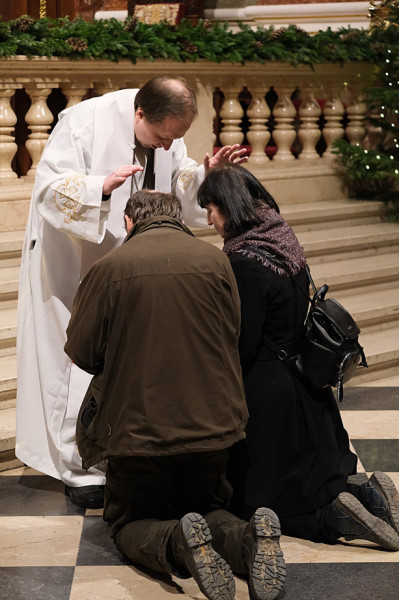 Az imádság után a püspökök külön áldásban részesítették a hosszú sorokban felsorakozó résztvevőket.