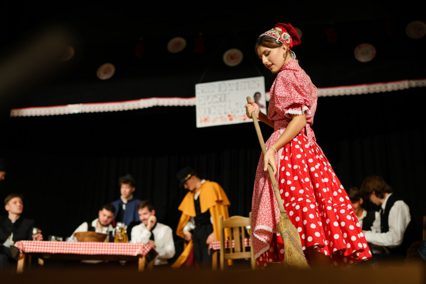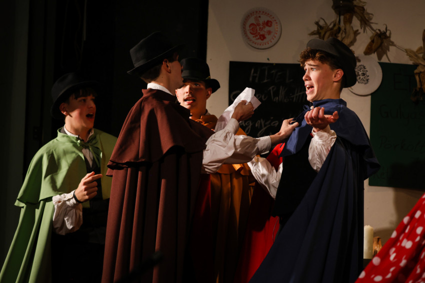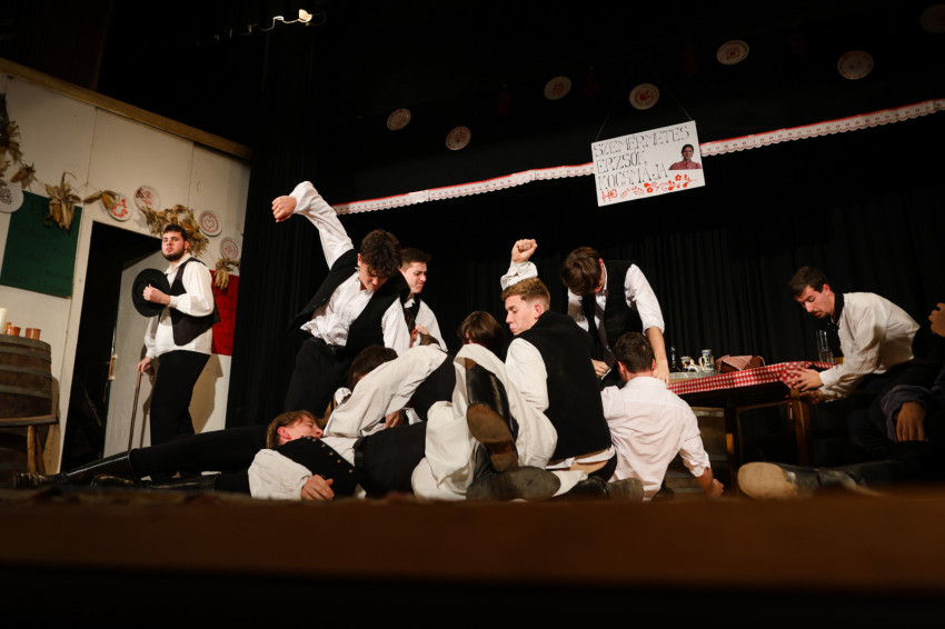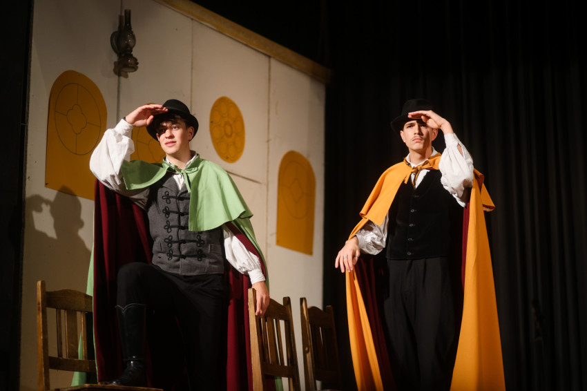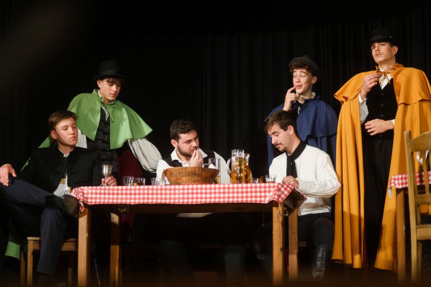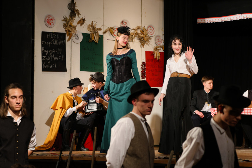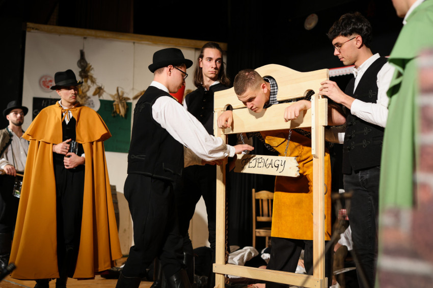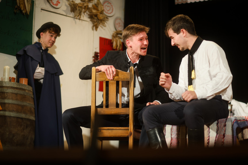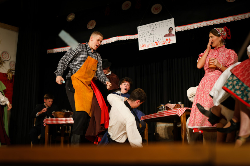 Idén merész volt a darabválasztás: a három 12. osztályból verbuválódott alkalmi társulat Petőfi Sándor műfaj- és stílusparódiának szánt darabját, A helység kalapácsa című vígeposzt vitte színre.