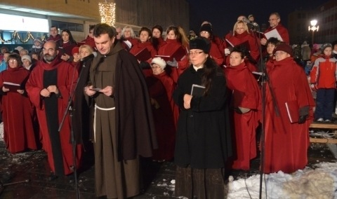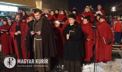 Erik testvér elmélkedésében arra kereste a választ, mi az, ami a térre vonzott pár száz embert. „Annak, hogy összegyűltünk, közösségteremtő ereje van. A hitünk is megmutatkozik ma este. Az adventi időszak egyházunk sajátos időszaka, amelynek kettős üzenete van: Krisztus születésére fordítja a figyelmünket, a béke, a jóság hírnökének az eljövetelére” – hangsúlyozta a ferences szerzetes.