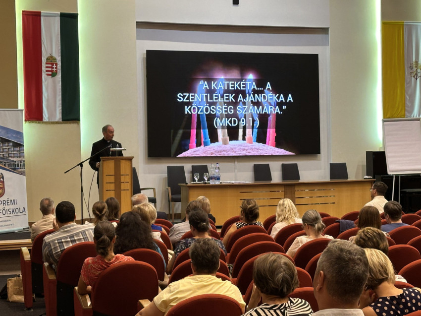 Kató Csaba előadásában hangsúlyozta a hittapasztalat fontosságát. Szükséges, hogy a katekéta ápolja és erőt merítsen belőle a nehézségek idején. A katekéta vezetője és kísérője a rábízottaknak. Mester és tanítvány kapcsolatában mester csak az tud lenni, akinek van tapasztalata. Feladata, hogy tapasztalatának segítségével átadja a hittartalmat tanítványainak. 3-3 szent példáján keresztül mutatta be az előadó a mester és tanítvány, kísérő és kísért kapcsolódását és ennek szép megvalósulását. Istennek terve van mindazokkal, akiket ránk bízott. Kapcsolódás nélkül nehéz elképzelni a katekéta szolgálatát. A katekéta a Szentlélek ajándéka, de