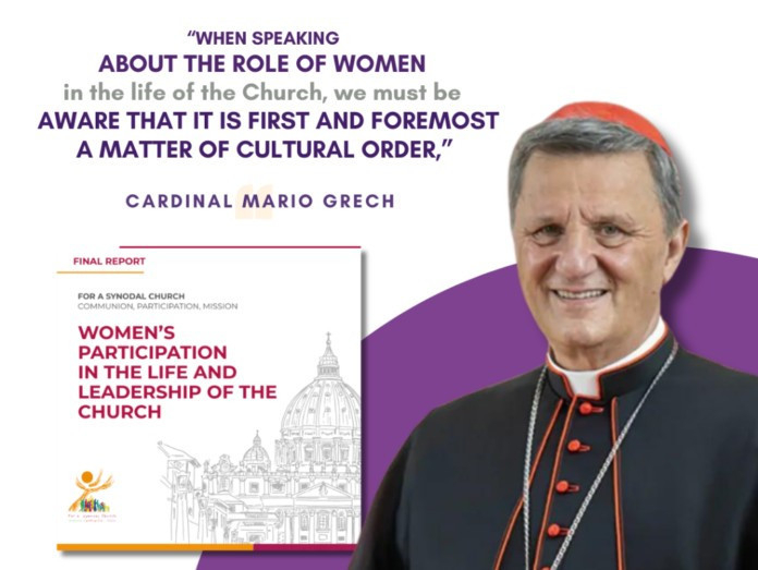 „Amikor a nők szerepéről beszélünk az Egyház életében, tisztában kell lennünk azzal, hogy ez elsősorban kulturális kérdés – állítja Mario Grech bíboros, a Püspöki Szinódus Főtitkársága vezetője. – A világ számos részén valóban mély kulturális kihívásokkal kell szembenéznünk, amelyeket el kell ismernünk és kezelnünk kell. A hit megélése túl gyakran bizonyos kulturális szempontok, és nem az evangéliumi értékek alapján történik. Megújult küldetésünk az, hogy az Egyház olyan erővé váljon, amely a kultúrákban megtestesíti az evangéliumot, előmozdítva mindenki jogainak tiszteletben tartását és az egyes emberek hivatásának megfelelő közös felelősségvállalást.