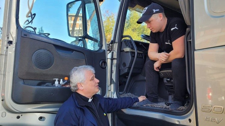 Hétfőn abba a dél-ukrajnai városba, Herszonba érkezett, ahol az elmúlt hetekben felrobbantották Nova Kakhovka-i víztározó gátját, és emiatt több mint 80 falut elárasztott a víz, 20 ezer hektárnyi termőföld pusztult el és több mint 150 tonna olaj ömlött ki. A bíboros maga vezette a teherautót, amely tele volt élelmiszerekkel (főleg Koreából származó étellel, több mint 100 ezer adagnyi fagyasztva szárított levessel) és mindenekelőtt gyógyszerekkel, a Vatikánból és a Gemelli Klinikáról. Június 22-én indult el Rómából, 3125 kilométert tett meg.