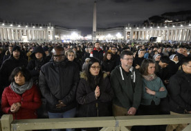 Vatikán Városállam Kormányzósága kezdeményezésére a múlt hétfőn, február 27-én kezdődött rózsafüzér-imalánc. A szentolvasót vasárnap este a lengyel Konrad Krajewski bíboros, pápai főalamizsnás imádkozta annak dicsőséges titkaival, amelyek Krisztus feltámadásának eseményeit állítják a fókuszba.