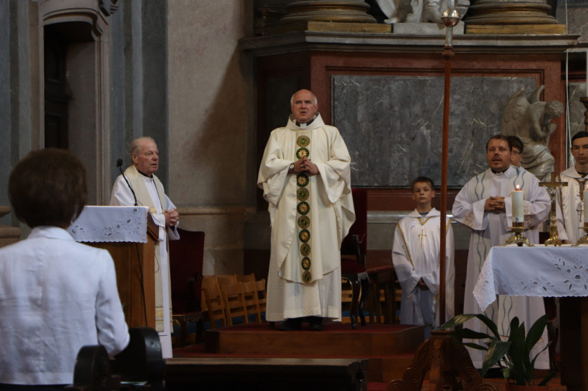 A szentmise záróáldása előtt a veszprémi EKIF vezetője Udvardy György érsek nevében is köszönetet mondott a katolikus intézmények vezetőinek, munkatársainak és a szülőknek a sikeres tanévért.