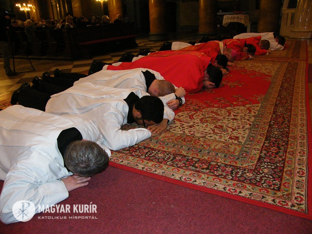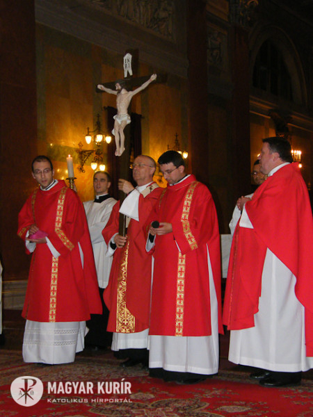 Ternyák Csaba érsek az asszisztenciával teljes csendben vonult ki, majd leborulásukkal fejezték ki a megrendültséget. A szertartás első részében igeliturgiára került sor, amelynek hangsúlyos része volt a János evangélium passiója, amelyet a kispapok szkólája adott elő Urbán Péter karnagy vezetésével.