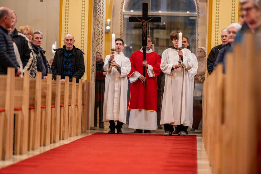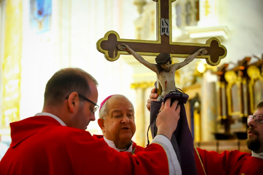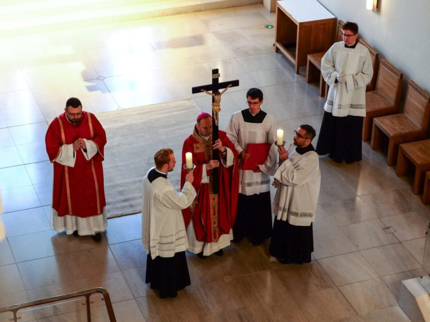 A nagypénteki szertartást Feketes Szabolcs Benedek püspök vezette a szombathelyi székesegyházban.