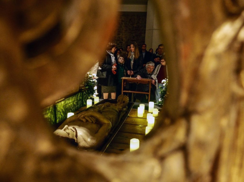 A vecsernye kezdetén a templom közepén még csak egy szépen feldíszített asztalt látunk, ami később Jézus sírjává válik. Ha rátekintünk, magát az Istent látjuk. S ha szeretettel tekintünk a körülöttünk lévőkre, nemcsak embereket látunk, ha felfedezzük bennük Isten arcát.