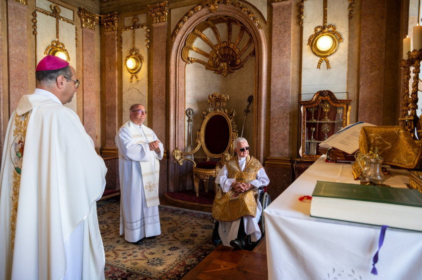 A jubiláns atyát Székely János megyéspüspök köszöntötte, megköszönve hűségét, áldozatkész szolgálatát.