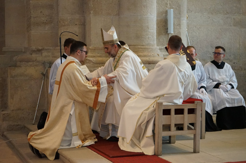 A homília után következett a szentelés szertartása. A jelöltek először ünnepélyes ígéretet tettek főpásztoruknak, majd kezüket a kezébe helyezve engedelmességet fogadtak neki és utódainak.