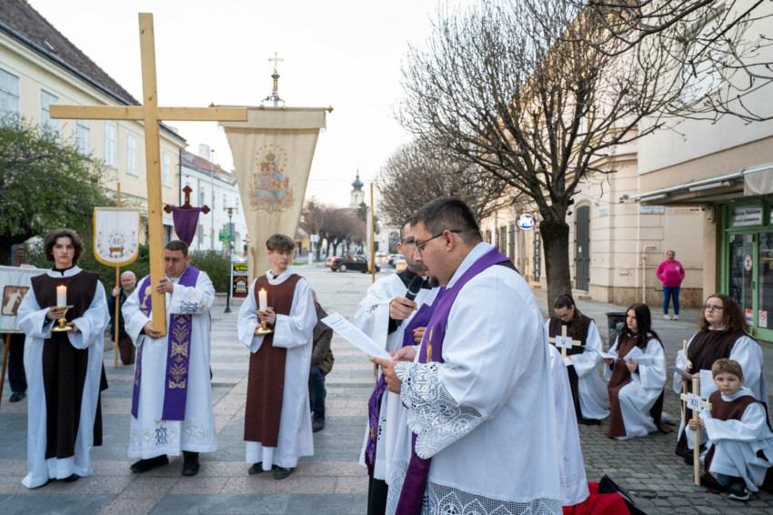 „A nagyböjti időszak arra szólít fel mindannyiunkat, hogy legyünk egymás iránt szolidárisak. Jézus minket a kereszten váltott meg, a keresztben van az üdvösségünk és erőforrásunk” – emelte ki Mezei András, a Kis Szent Teréz Plébánia plébánosa. A plébános rámutatott, hogy a két testvérplébánia, a Fő téri és a Kármel mellé tavaly után idén még több más résztvevő csatlakozott.