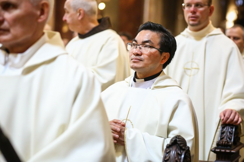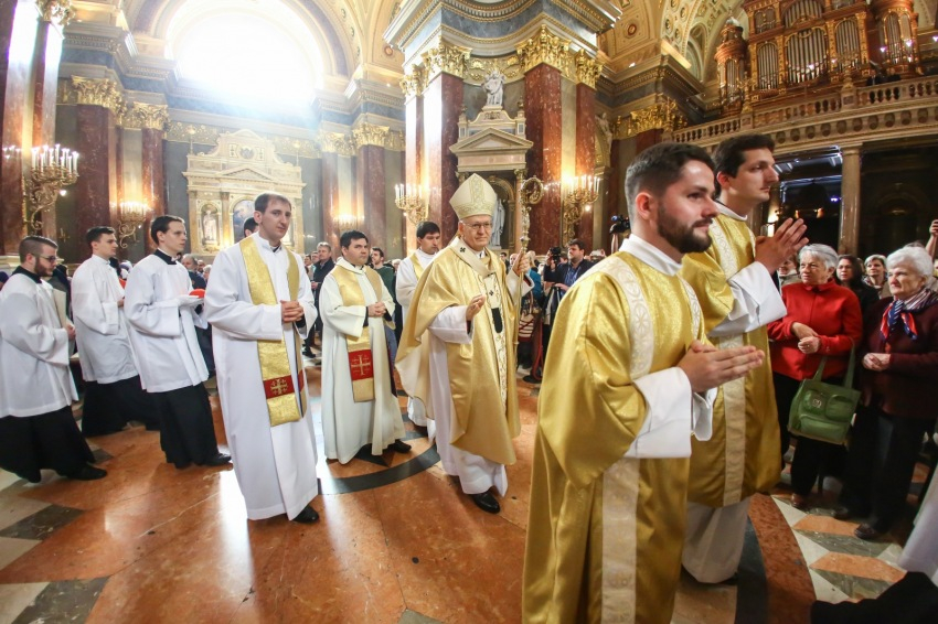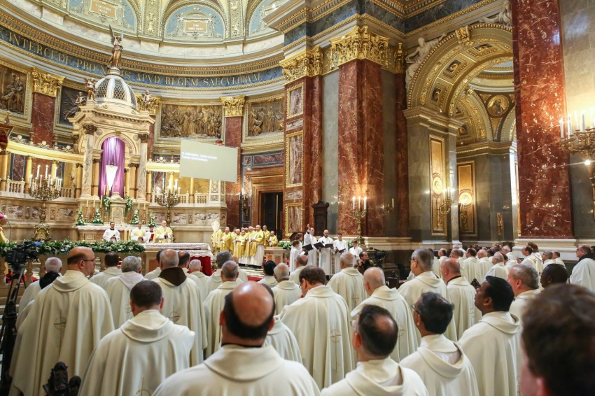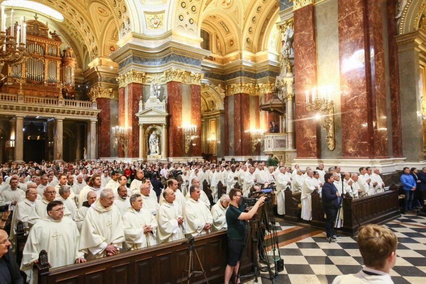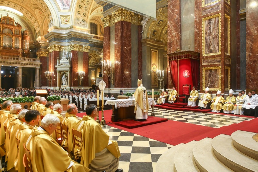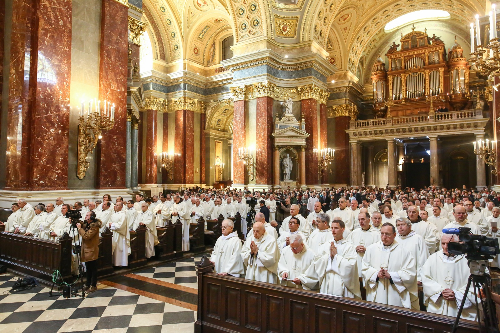 Erdő Péter bíboros Michael August Blume SVD érsekkel, apostoli nunciussal, az Esztergom-Budapesti Főegyházmegye segédpüspökeivel, papjaival és szerzetes papjaival együtt mutatta be a szentmisét, amelyen részt vettek a főegyházmegye diakónusai és számos hívő is.