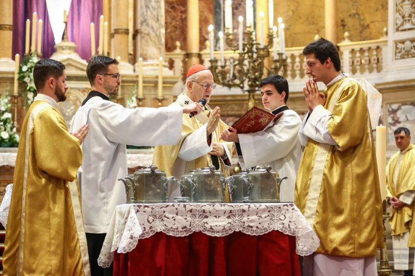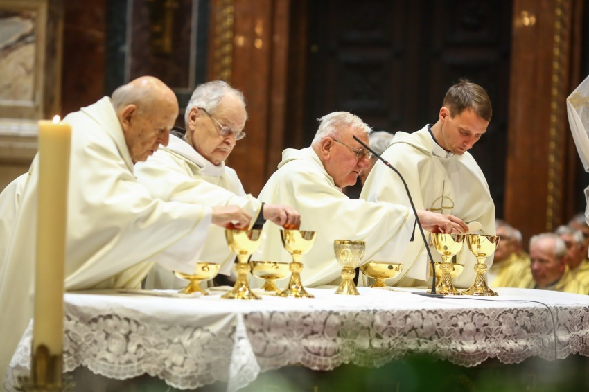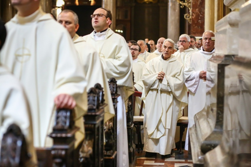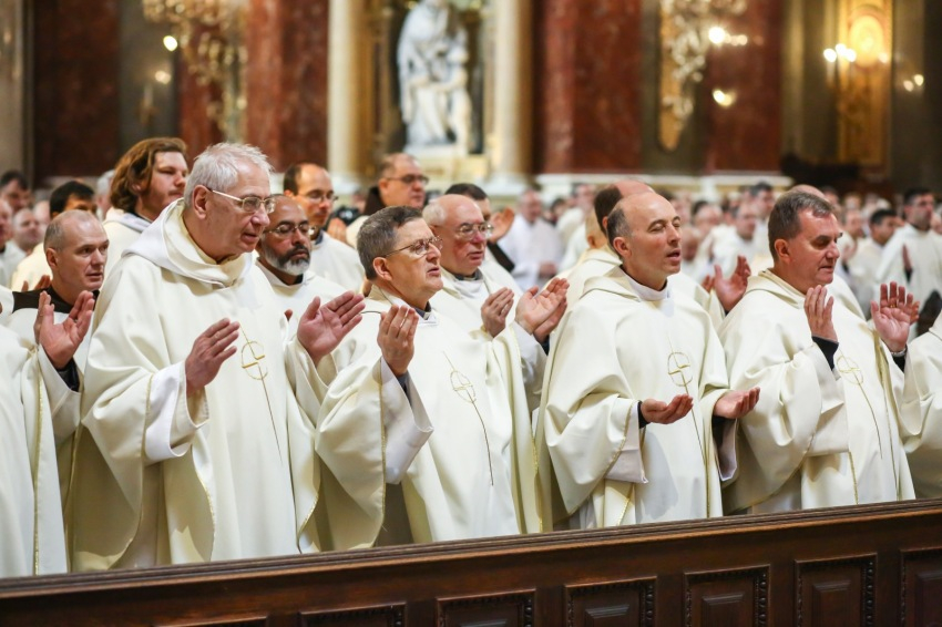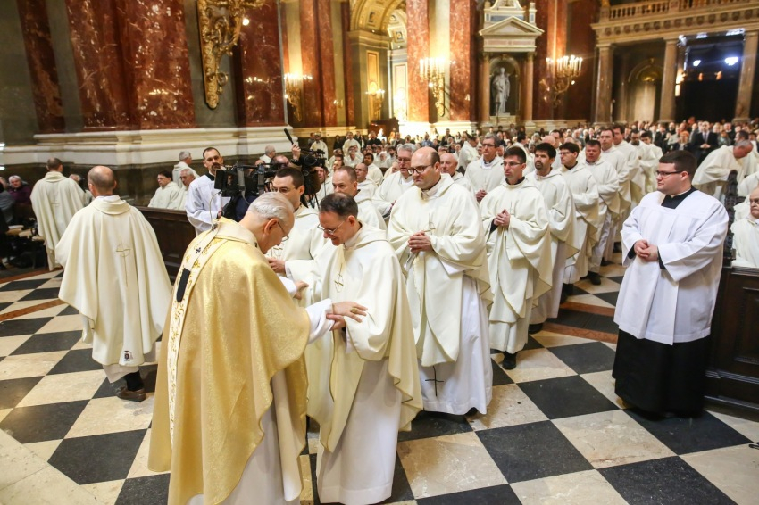 Köszönetemet fejezem ki minden püspök- és paptestvéremnek, minden kedves diakónusunknak az áldozatos és alázattal vállalt szent szolgálatért, a hűségért, azért, hogy Krisztust közvetítik az emberek felé. Ha máskor nem, a mai ünnepen, amikor este már az utolsó vacsorára emlékezünk, kérdezzük meg magunktól, hogy miért vagyunk papok.